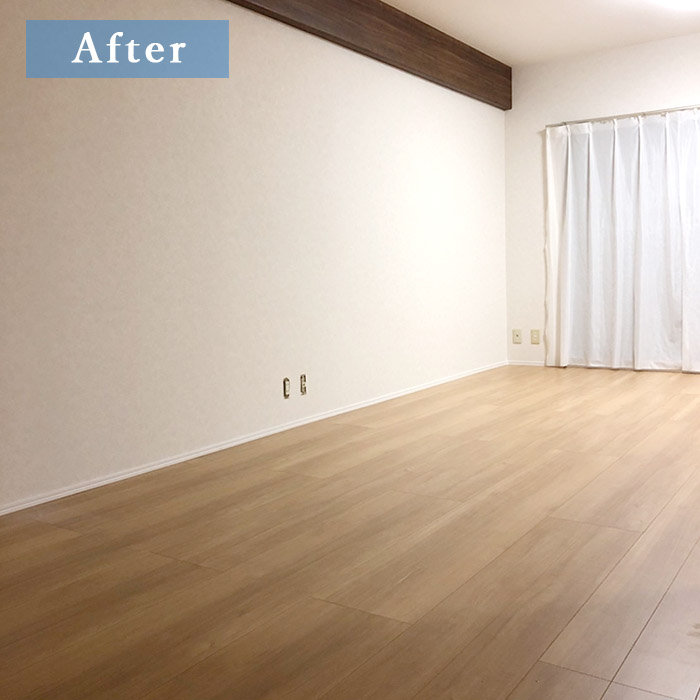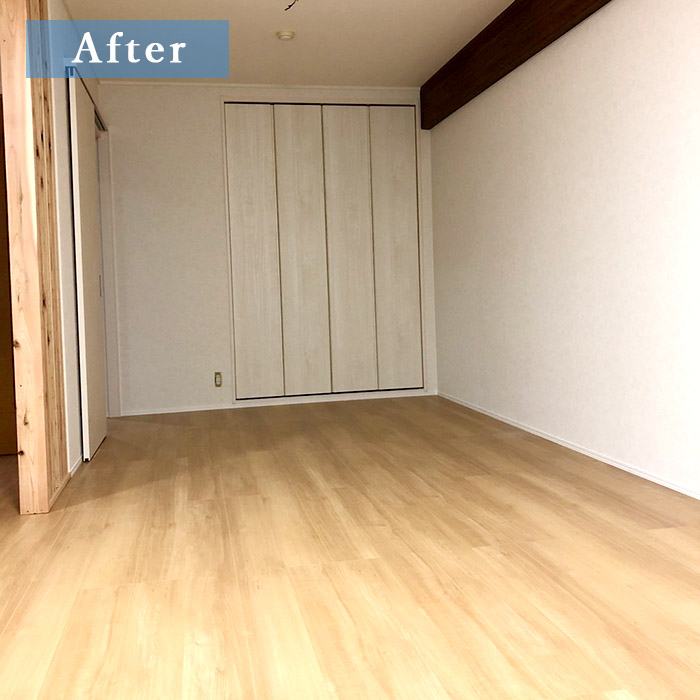 フローリングは、明るい色をお選びになられました。部屋が明るくなりました!和室との段差も無くなりました。