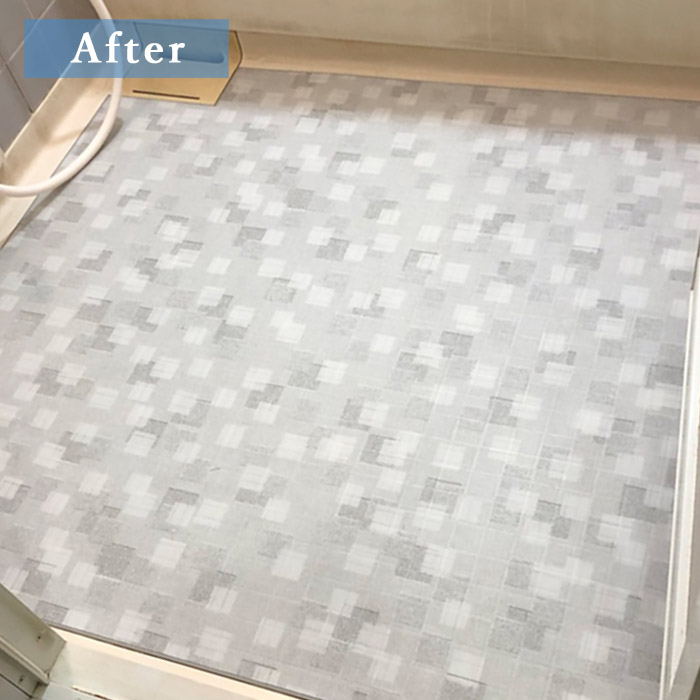 マンション浴室タイル貼りの床の上に、専用のシートを貼らせて頂きました。タイルの目地が、ボロボロと取れてしまっていると言う見た感じを隠すという事だけでは無く足の冷たく感じるヒヤッと感も軽減出来ました。